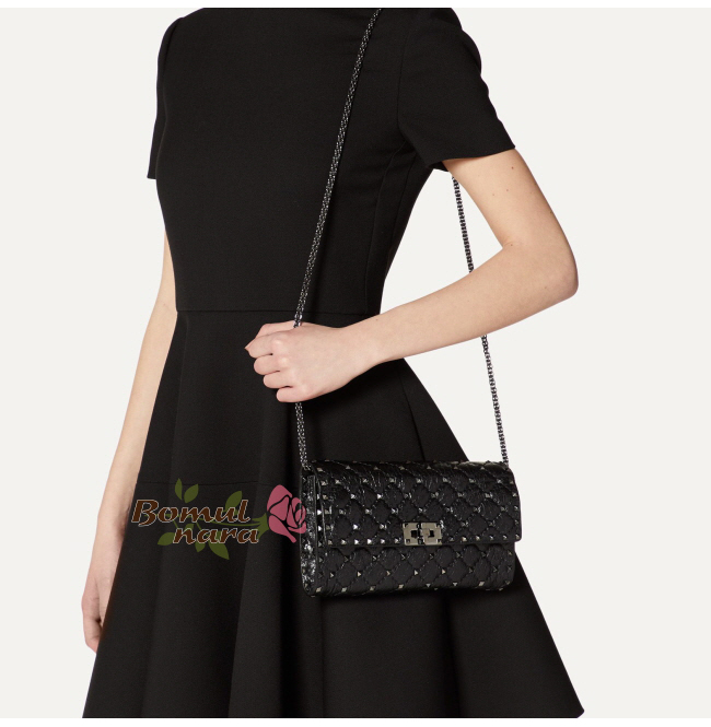 [스페셜오더]VALENTINO-SW2B0 발렌티노 블랙 크링클 양가죽 락스터드 스파이크 크로스 바디 클러치