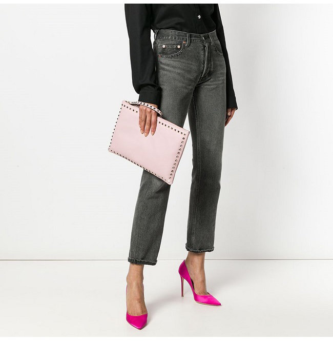 송아지 가죽 소재의 발렌티노 가라바니 락스터드 클러치