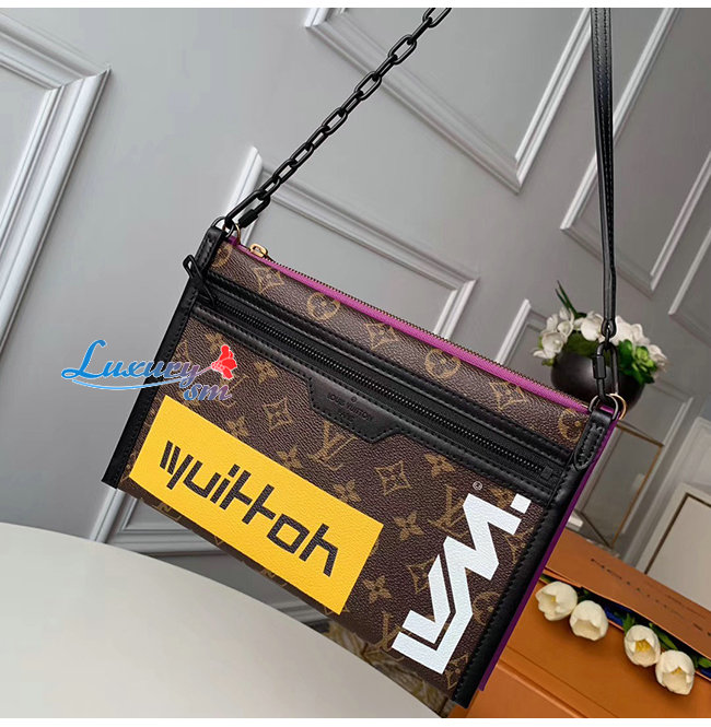 대조적인 루이비통 시그니처 체인 및 카라비너