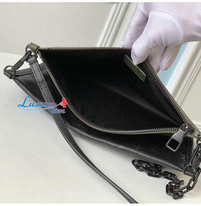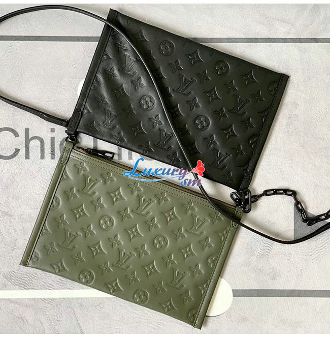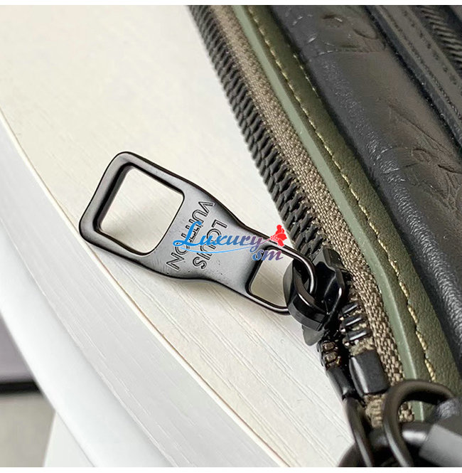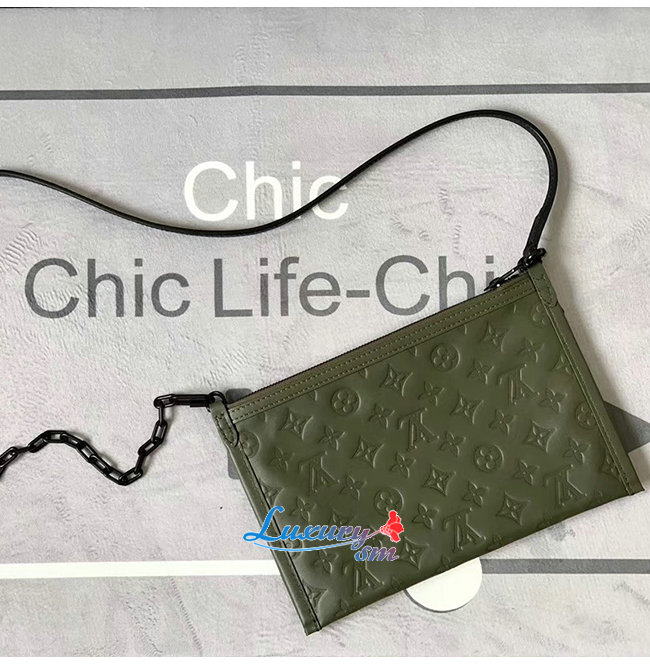 파우치 2개 세트 모노그램 쉐도 /카키 그린 송아지가죽