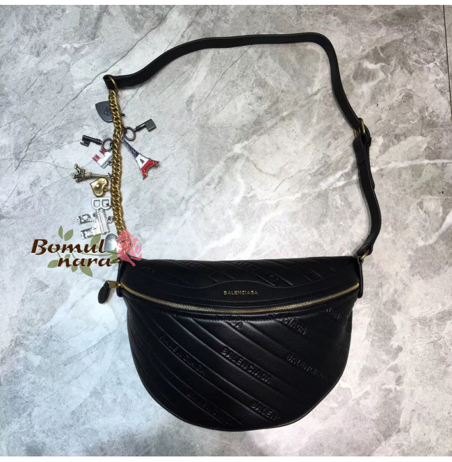 [스페셜오더]BALENCIAGA-551550 발렌시아가 블랙 스몰 수비니어 참 장식 벨트백