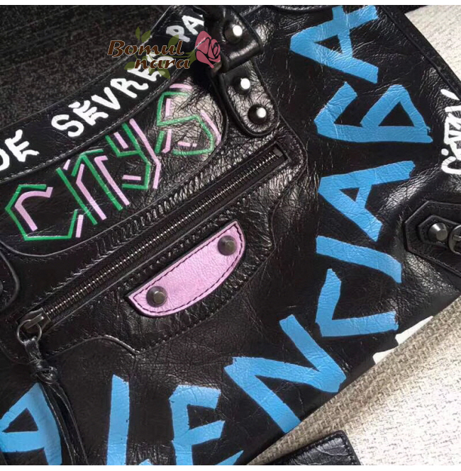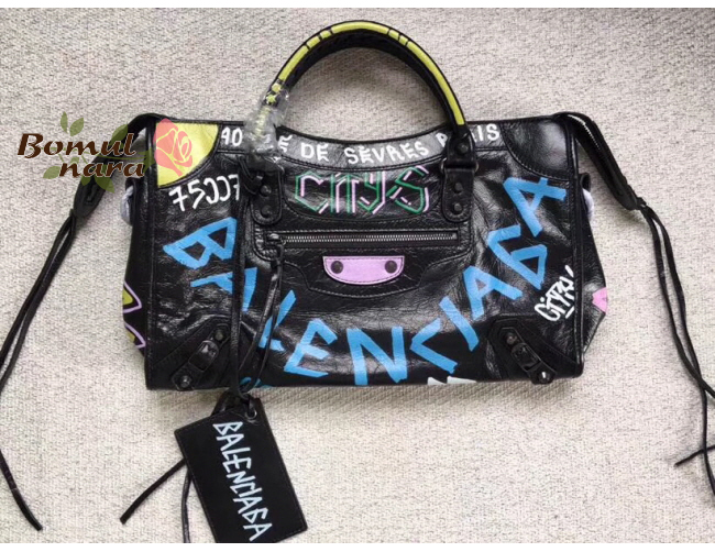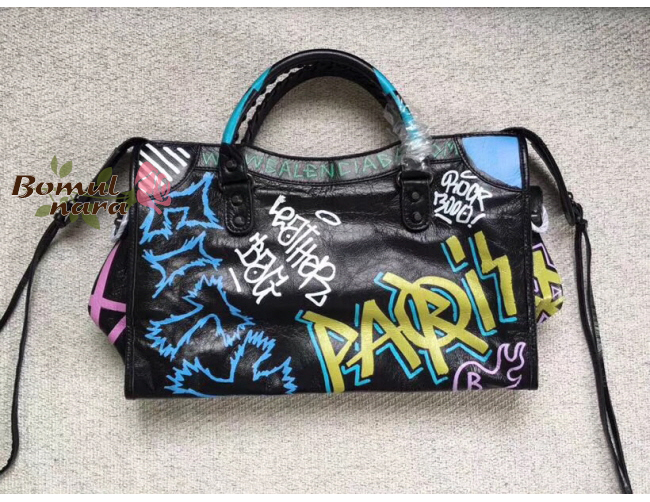 [스페셜오더]BALENCIAGA-431621 발렌시아가 블랙 스몰 그래피티 클래식 시티 핸드백 S