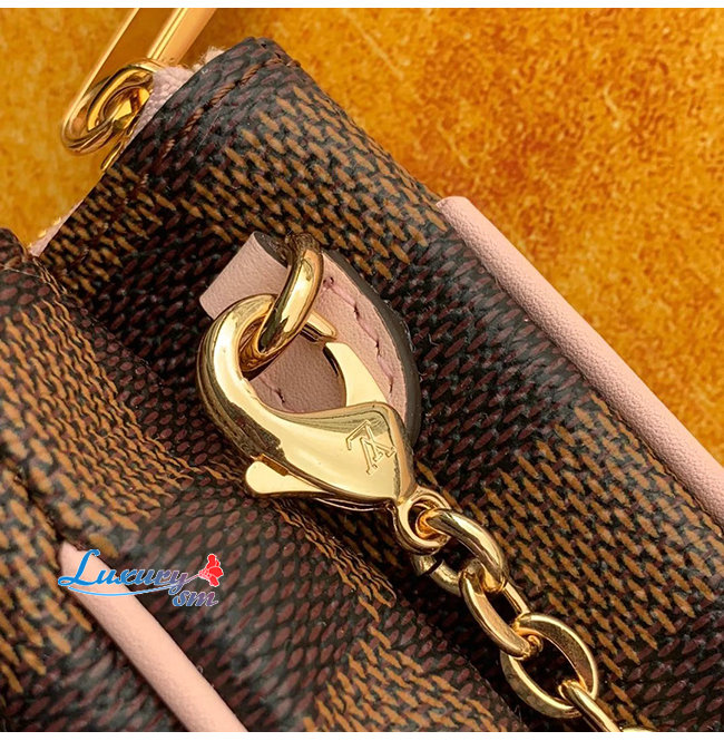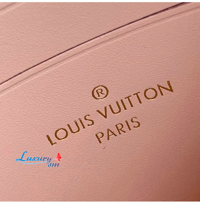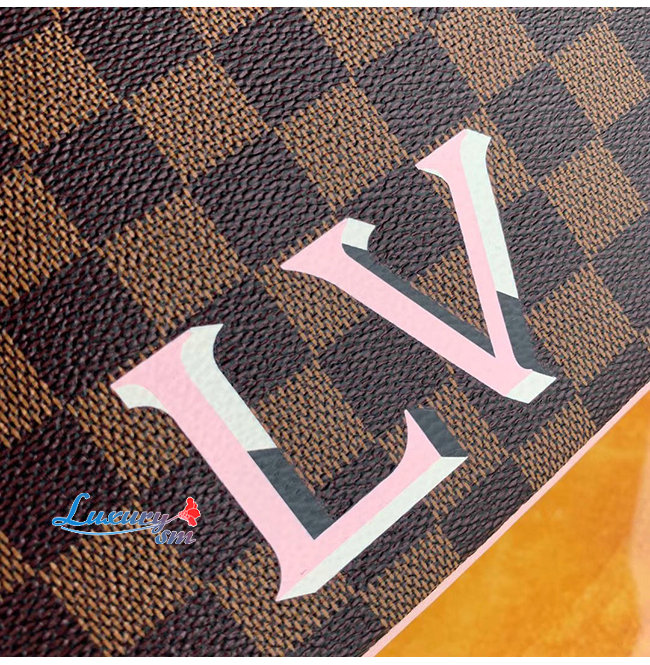 핑크 색상의 가죽 트리밍과 LV 시그니처 프린트를 더한