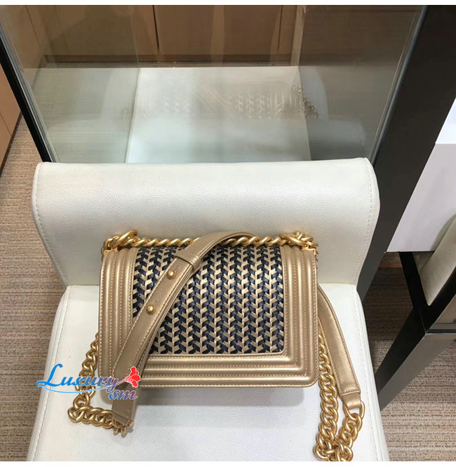 [스페셜오더]CHANEL-A67085 샤넬 화이트 카프스킨 브레이드 골드메탈 보이 샤넬 스몰 플랩백