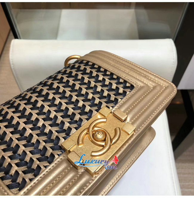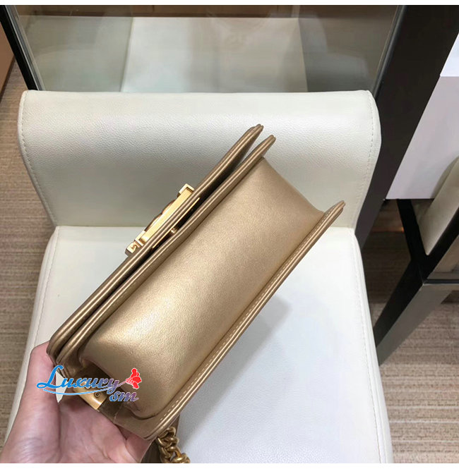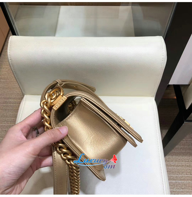 [스페셜오더]CHANEL-A67085 샤넬 골드 블랙 메탈릭 램스킨 골드메탈 보이 샤넬 스몰 플랩백