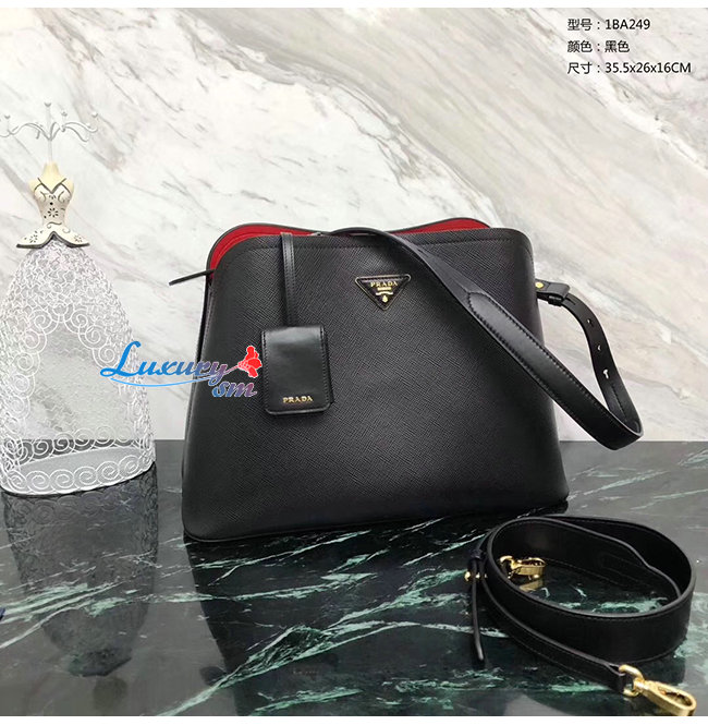 [스페셜오더]PRADA-1BA249 프라다 블랙 사피아노 가죽 마티네 핸드백