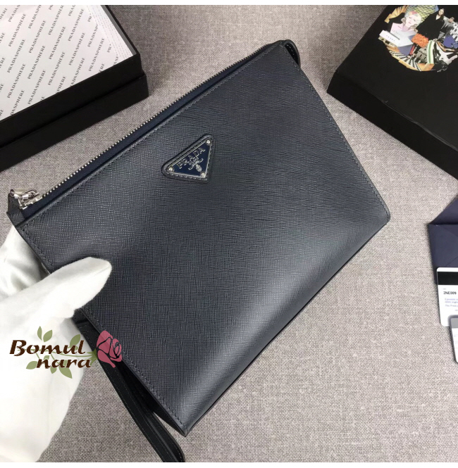 [스페셜오더]PRADA-2NE009 프라다 블루 사피아노 트라이 앵글 로고 맨스 클러치백