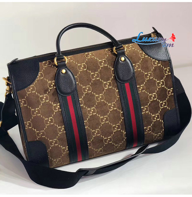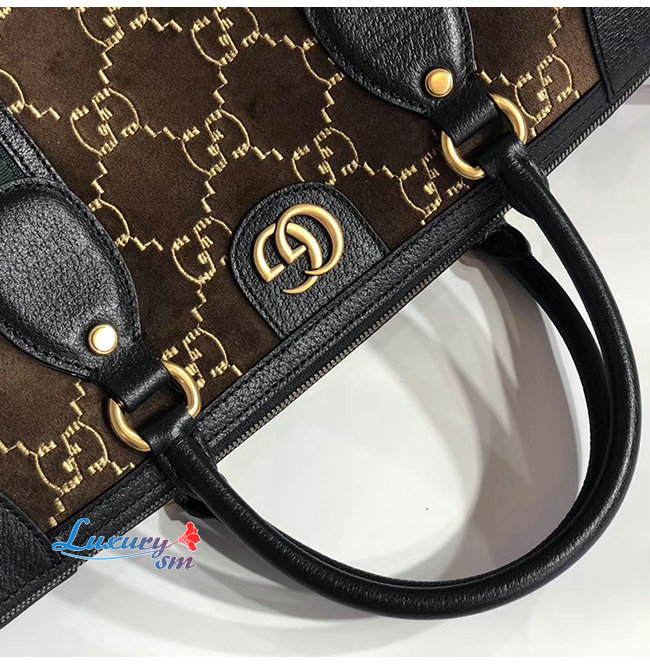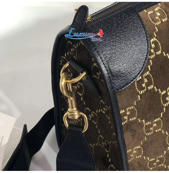 [스페셜오더]GUCCI-574966 2075 구찌 다크 브라운 GG 벨벳 미디엄 더플백