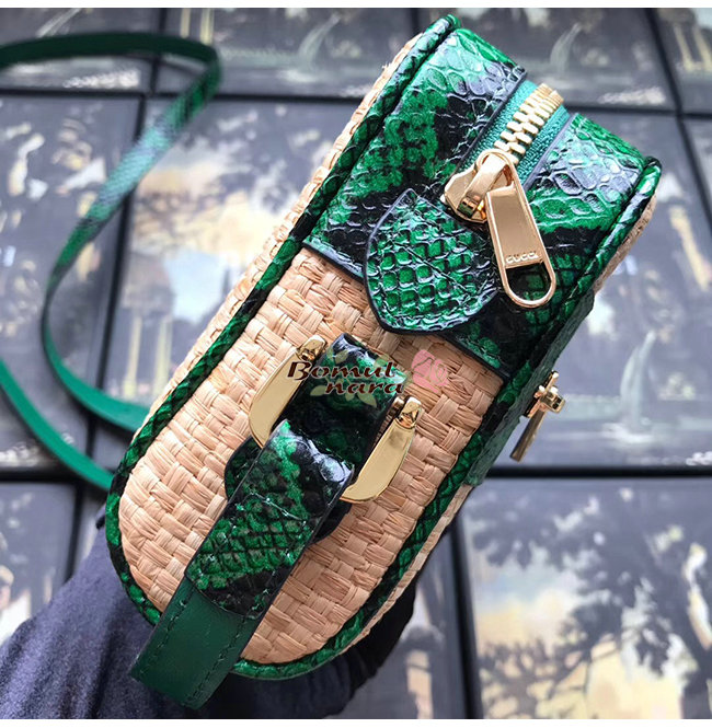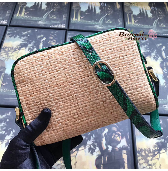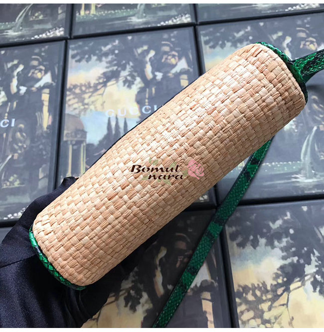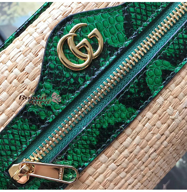 스킨 트리밍과 골드 더블 G 디테일로 완성한 패션소품.