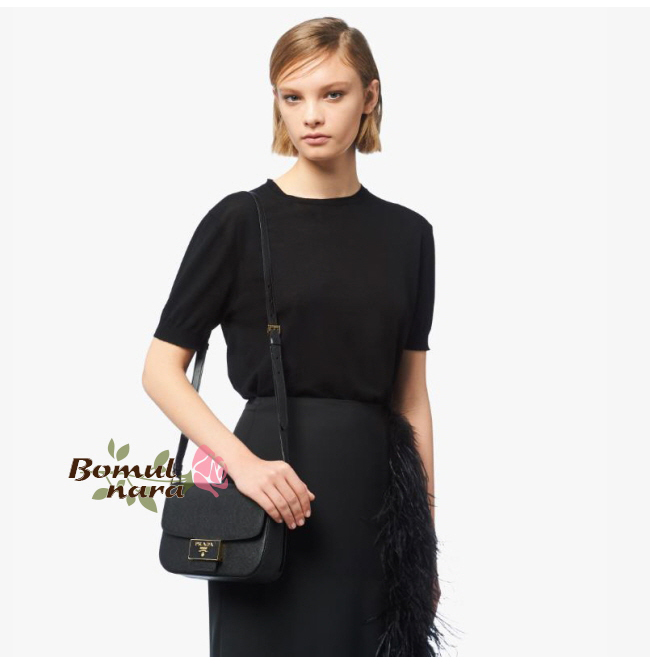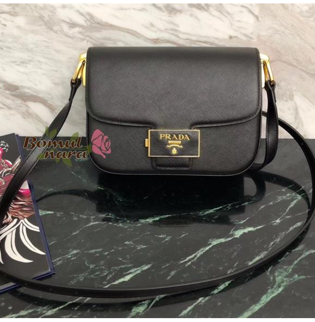 [스페셜오더]PRADA-1BD217 프라다 블랙 사피아노 엠블럼 숄더백