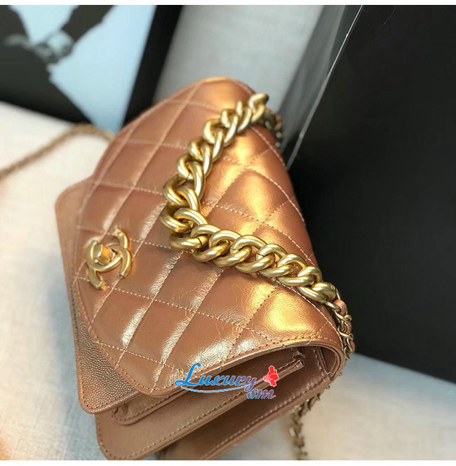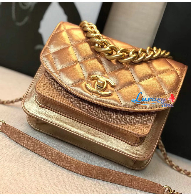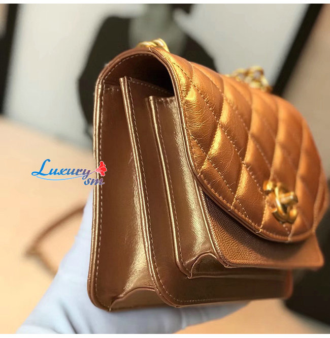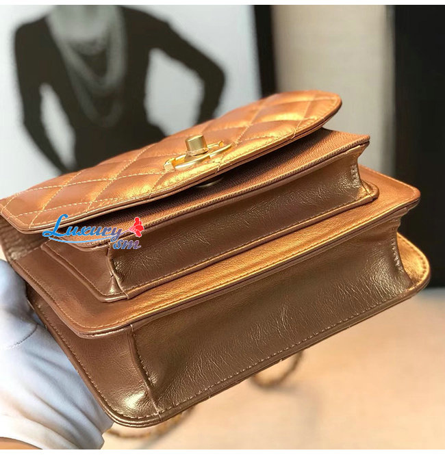 [스페셜오더]CHANEL-AS0784 샤넬 브론즈 메탈릭 카프스킨 골드메탈 스몰 플랩백
