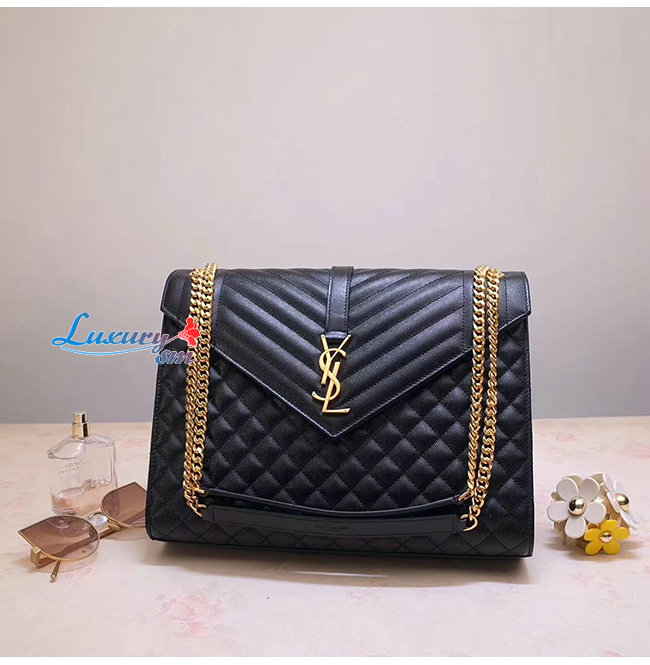 [스페셜오더]SAINT LAURENT-487198 생 로랑 블랙 퀼티드 텍스처드 송아지 가죽 라지 앙브로프 백