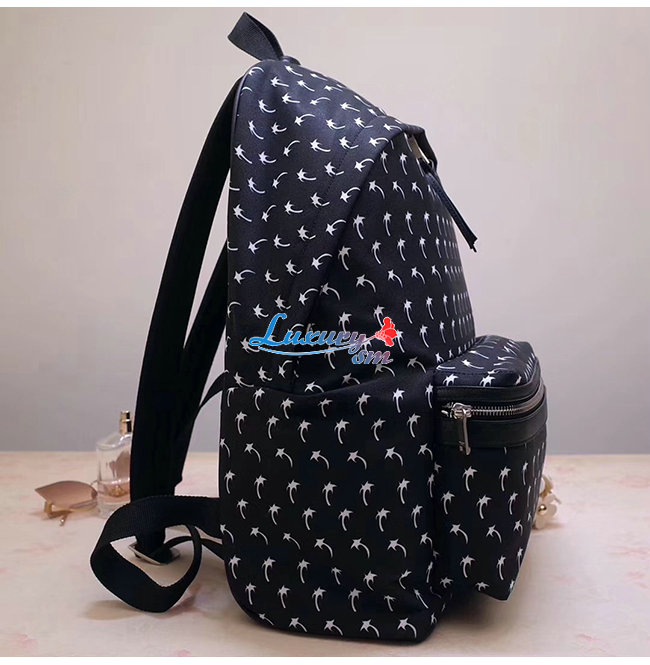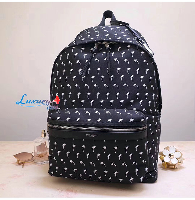 SAINT LAURENT-534967 생 로랑 블랙 시티 캔버스 야자수 프린트 백팩
