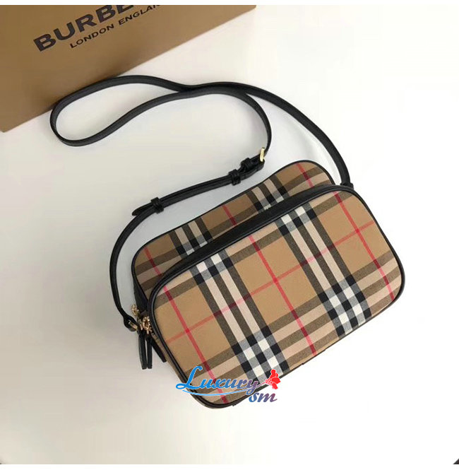 버버리 아카이브 빈티지 체크가 돋보이는 카메라백