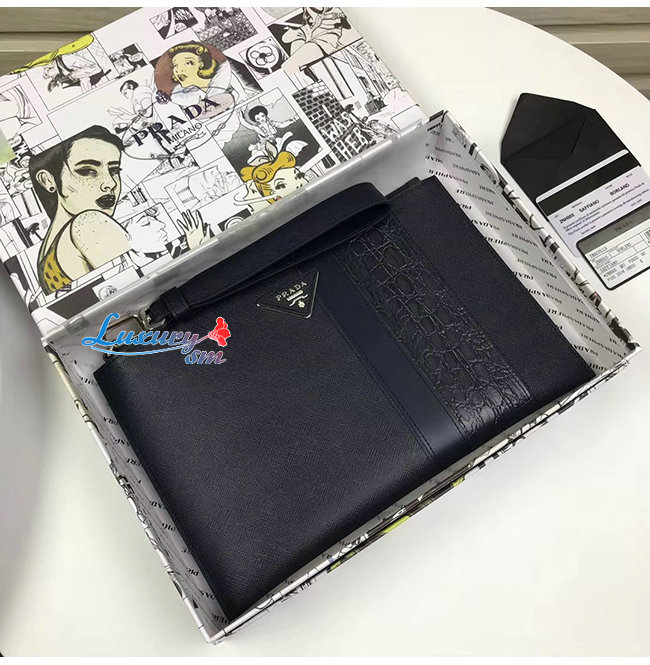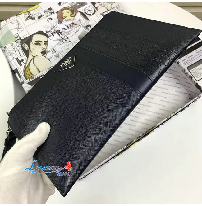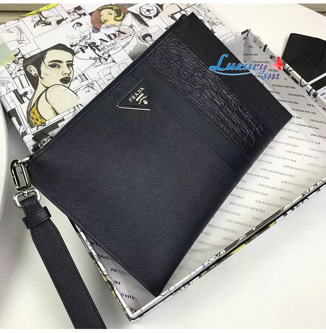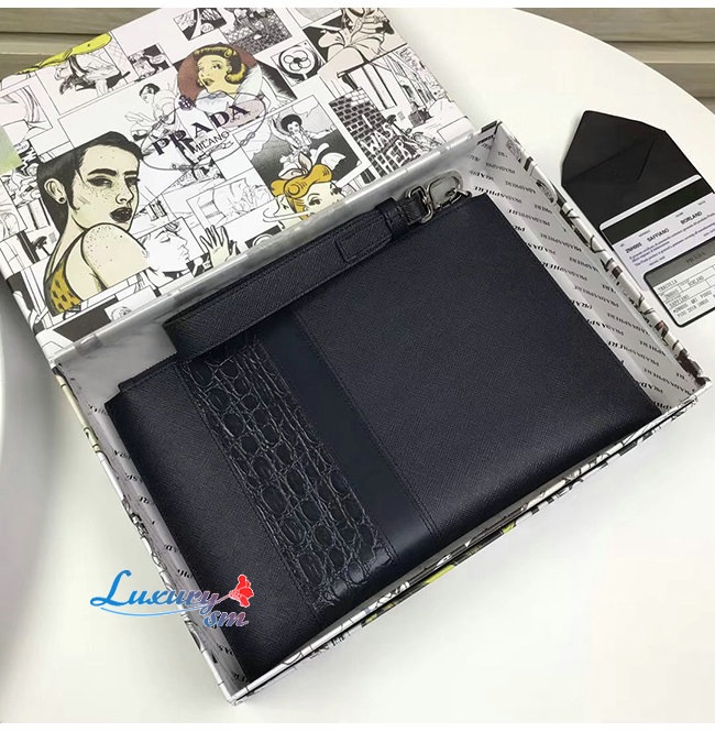 [스페셜오더]PRADA-2NH005 프라다 블랙 사피아노 가죽 파우치