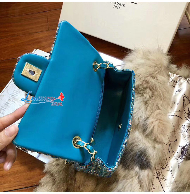 [스페셜오더]CHANEL-A69900 샤넬 터키쉬 블루 트위드 골드메탈 미니 플랩백