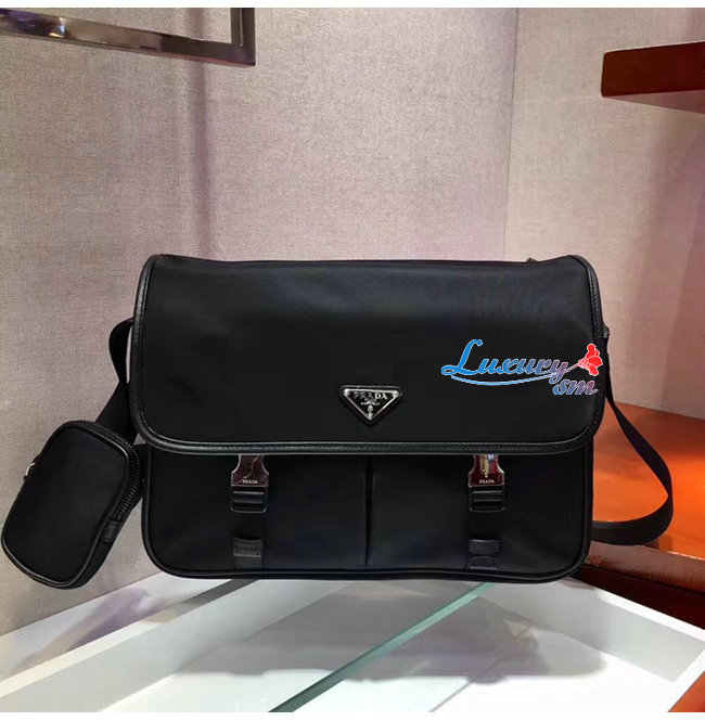 PRADA-2VD768 프라다 사피아노 가죽 트림 장식 나일론 플랩 메신저 백 가격 : 320,000원
