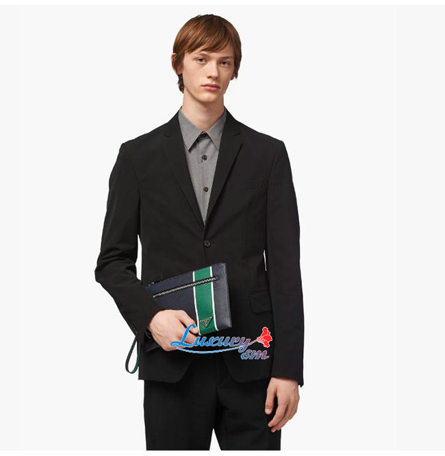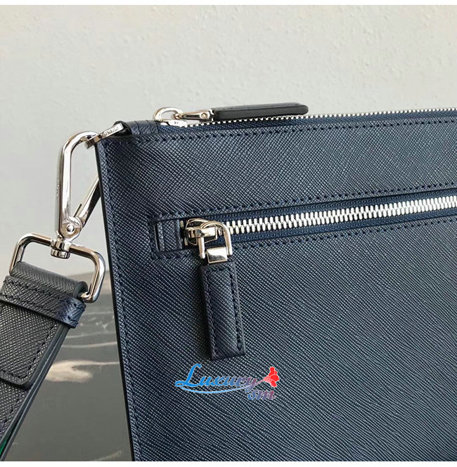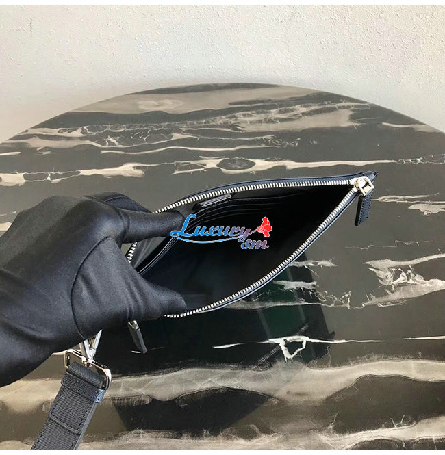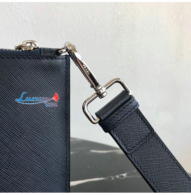 [스페셜오더]PRADA-2NH005 프라다 블랙/콘플라워 블루 사피아노 가죽 지퍼 파우치