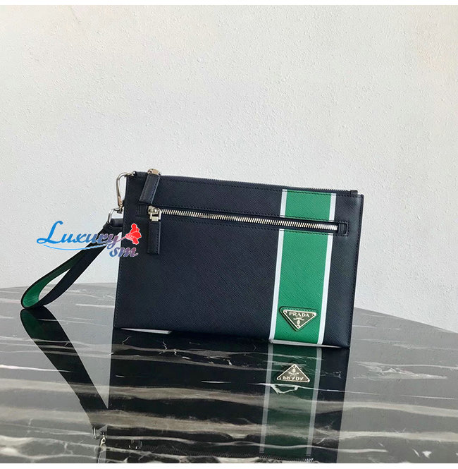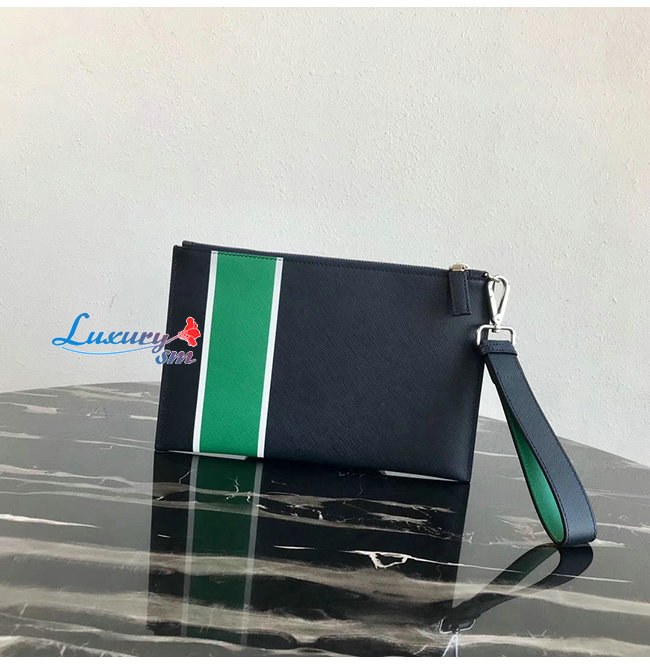 [스페셜오더]PRADA-2NH005 프라다 발틱 블루/그린 사피아노 가죽 지퍼 파우치