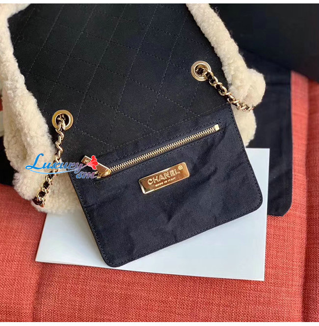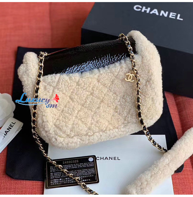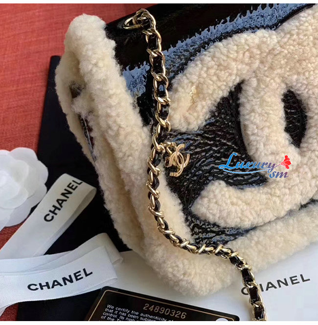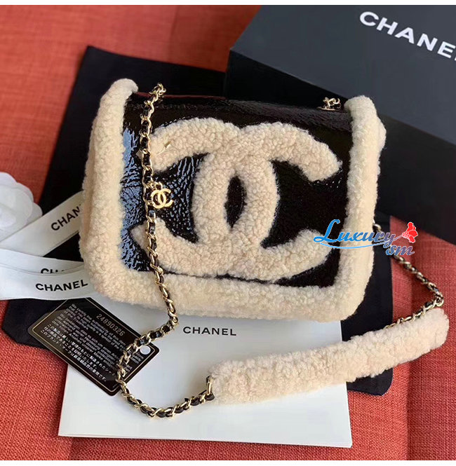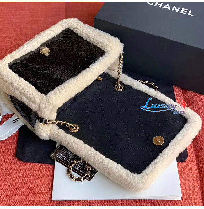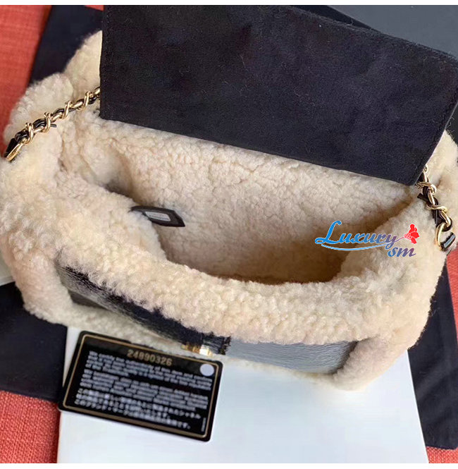 [스페셜오더]CHANEL-AS0321 샤넬 블랙/베이지 샤이니 크럼플드 쉽스킨 시어링 쉽스킨 골드메탈 플랩백