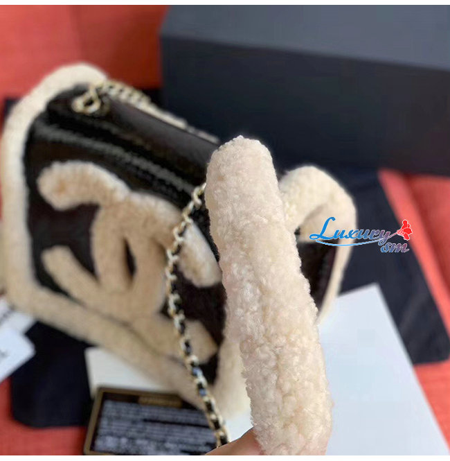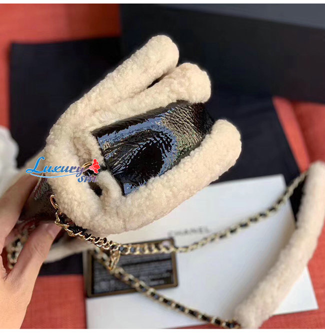 [스페셜오더]CHANEL-AS0321 샤넬 블랙/브라운 샤이니 크럼플드 쉽스킨 시어링 쉽스킨 골드메탈 플랩백 가격 : 450,000원
