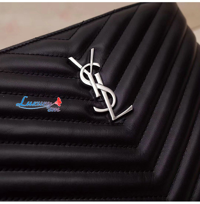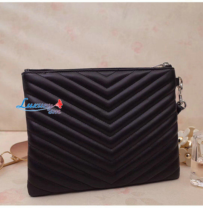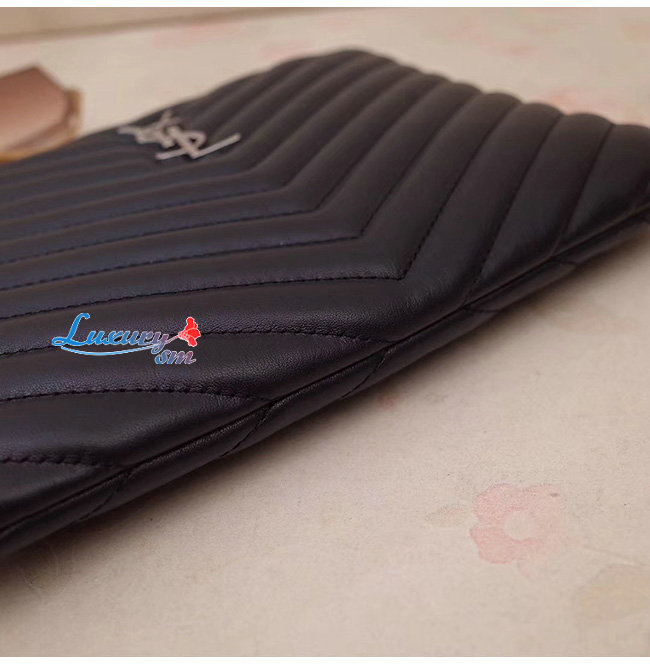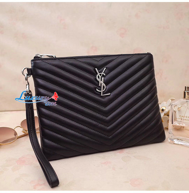 SAINT LAURENT-379039 생 로랑 블랙 퀼티드 송아지 가죽 은장 모노그램 파우치