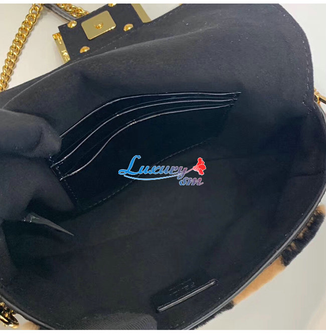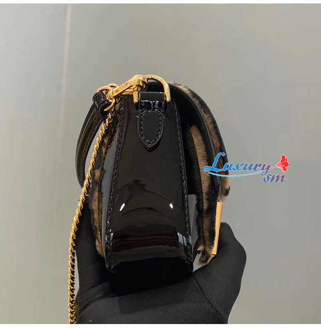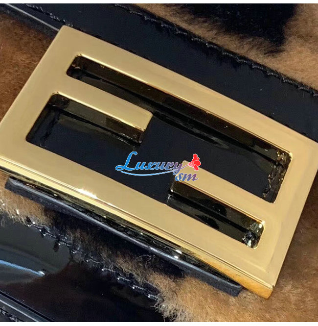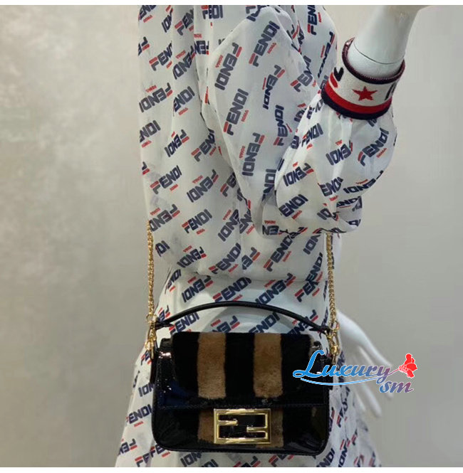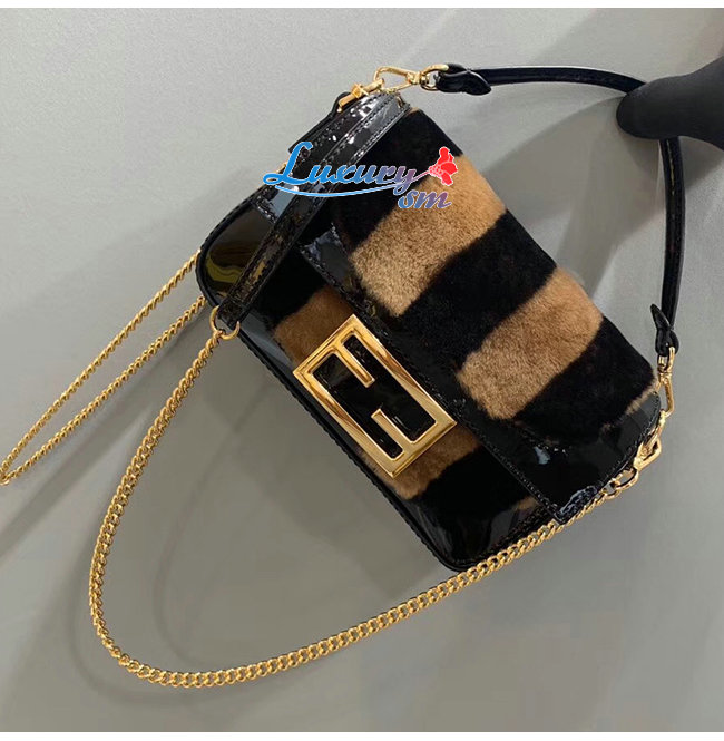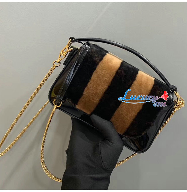 [스페셜오더]FENDI-8BS017 펜디 블랙 페이턴트 가죽 브라운/블랙 페퀸 스트라이프 양가죽 미니 바게트