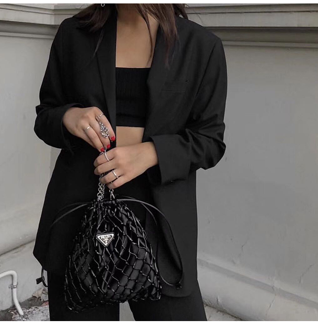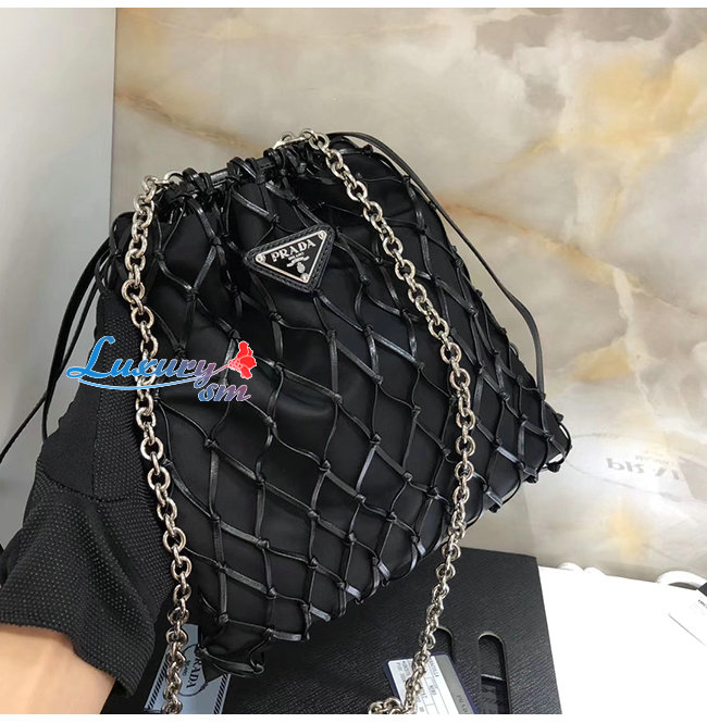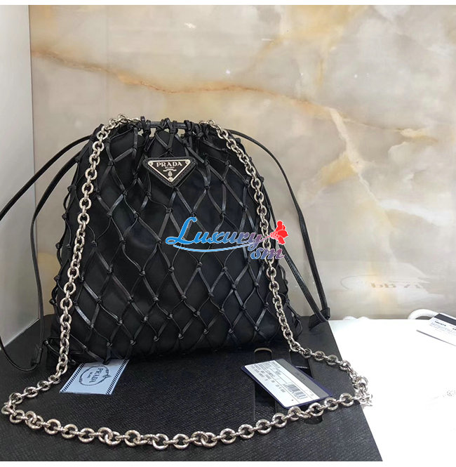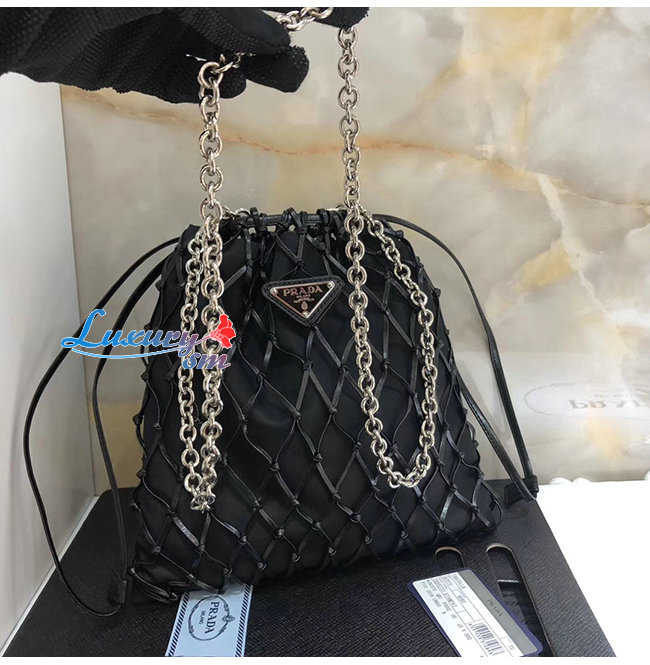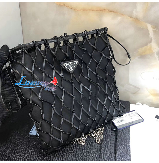 [스페셜오더]PRADA-1BC075 프라다 블랙 메시 새틴 파우치