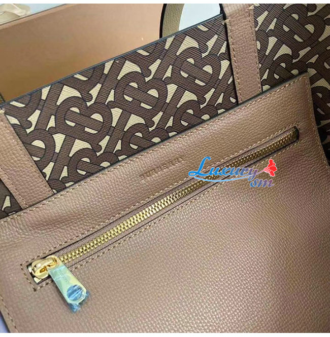 [스페셜오더]BURBERRY-80196271 버버리 카멜 송아지 가죽 엠보싱 모노그램 모티프 토트