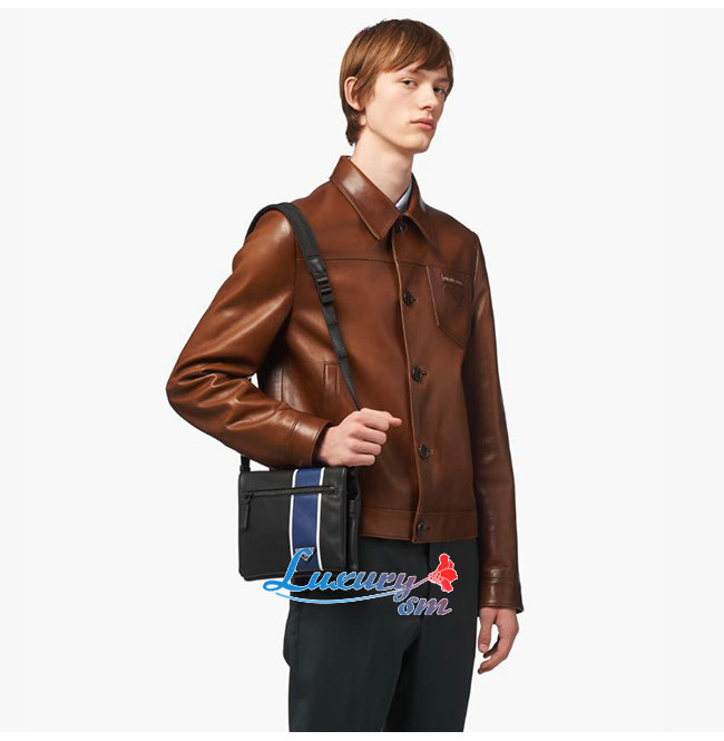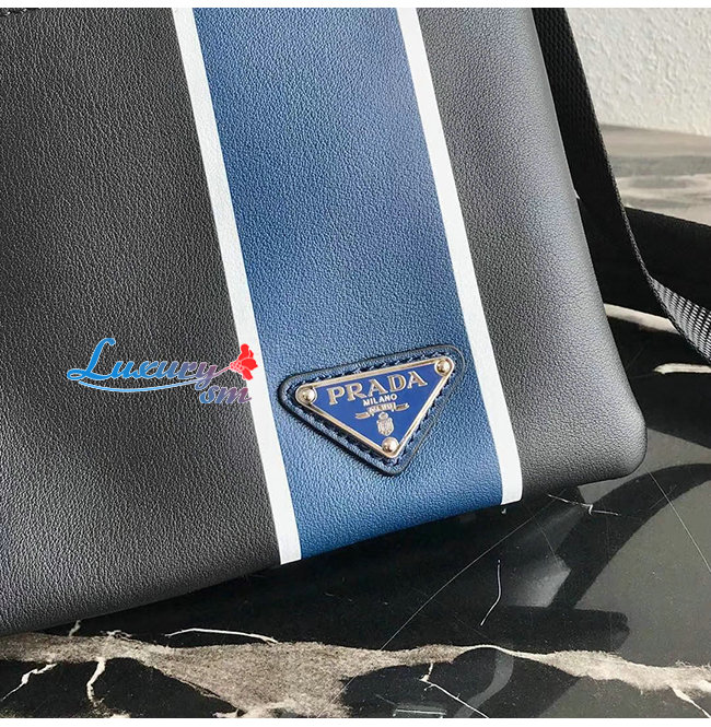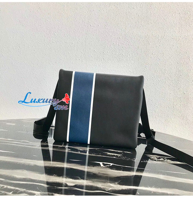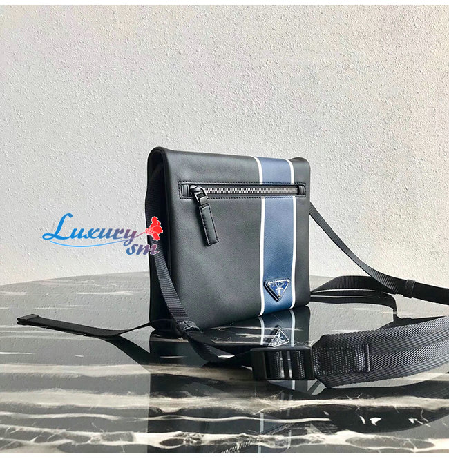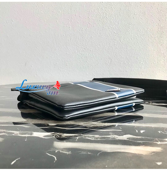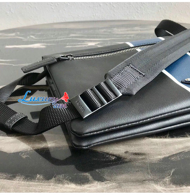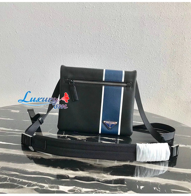 [스페셜오더]PRADA-2VH079 프라다 블랙/콘플라워 블루 송아지 가죽 밴돌리어백