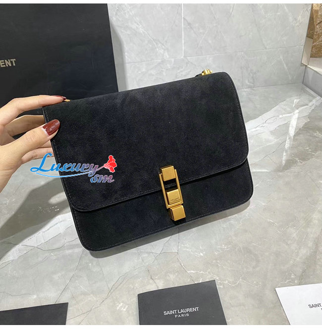 [스페셜오더]SAINT LAURENT-585060 생 로랑 블랙 스웨이드 송아지 가죽 카레 사첼백