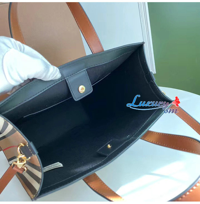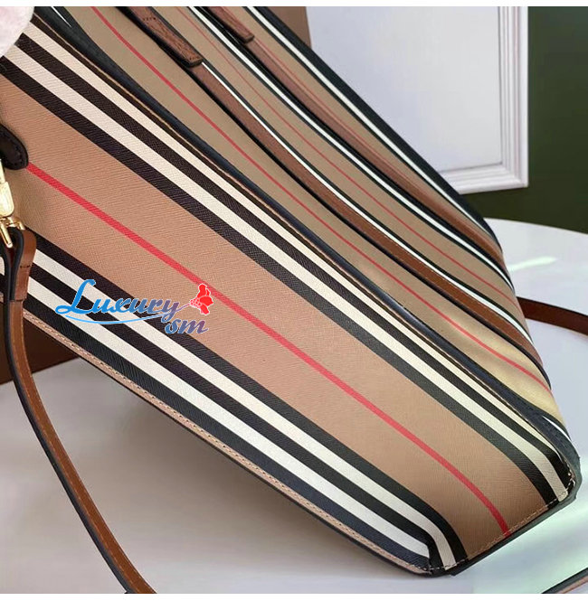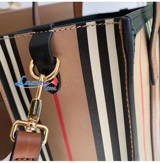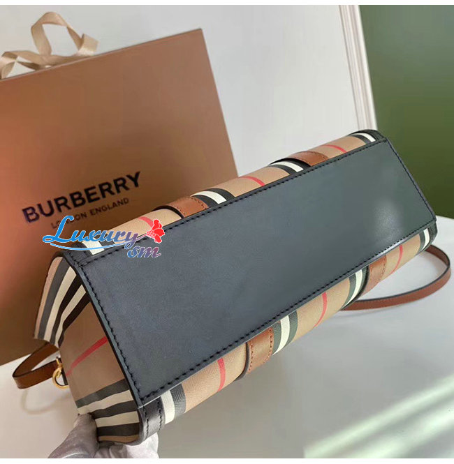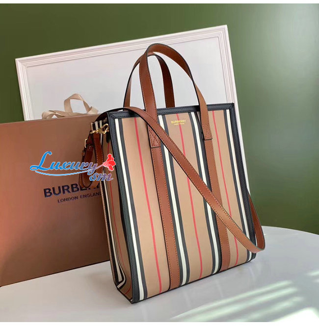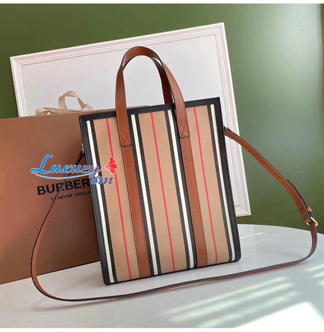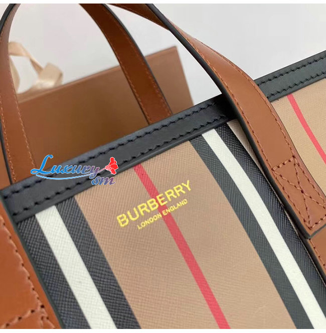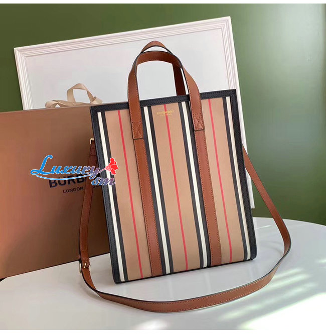 [스페셜오더]BURBERRY-80246861 버버리 스몰 아이콘 스트라이프 E-캔버스 포트레이트 토트백