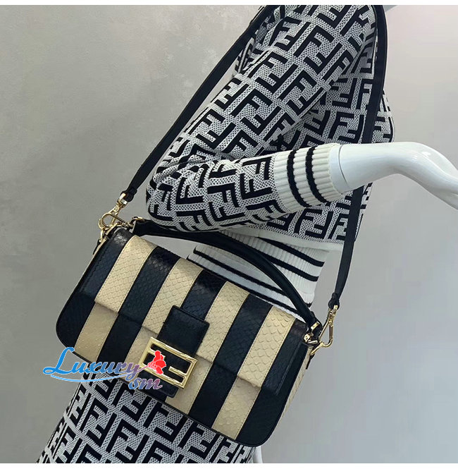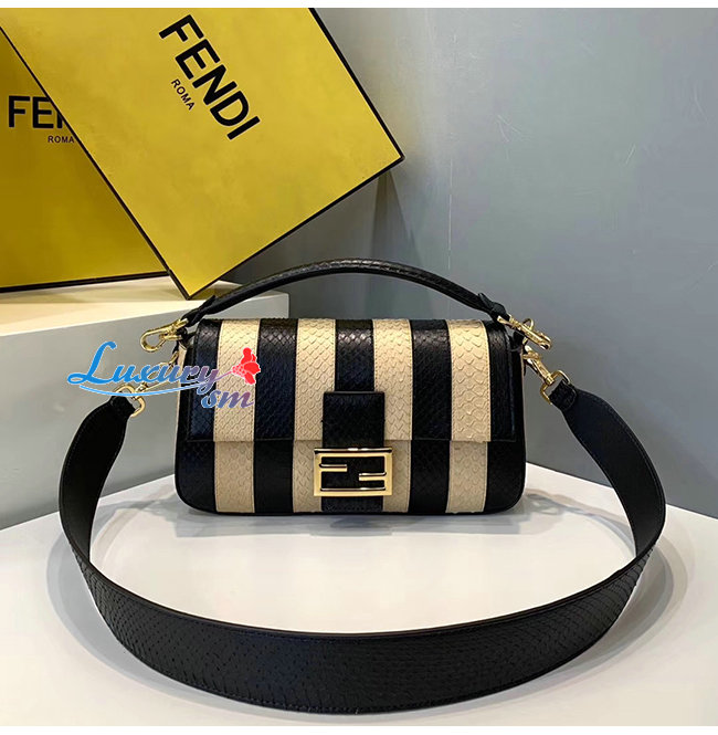 [스페셜오더]FENDI-8BR600 펜디 블랙/베이지 파이톤 가죽 바게트
