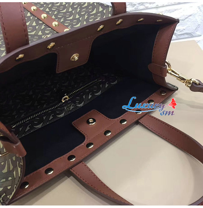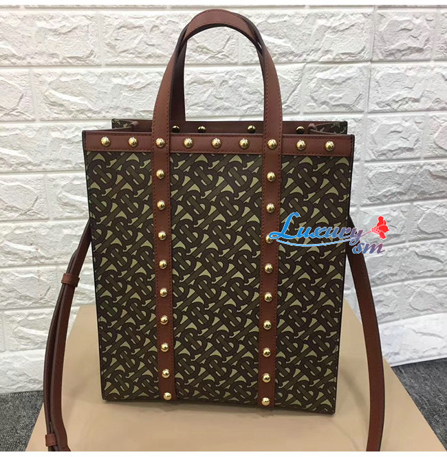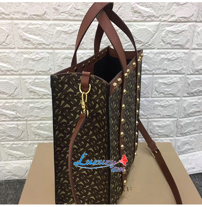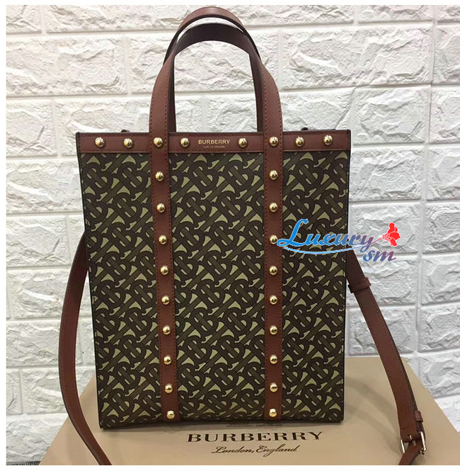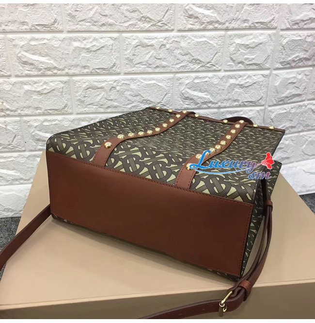 [스페셜오더]BURBERRY-80250761 버버리 탠 스몰 모노그램 프린트 E-캔버스 포트레이트 토트백