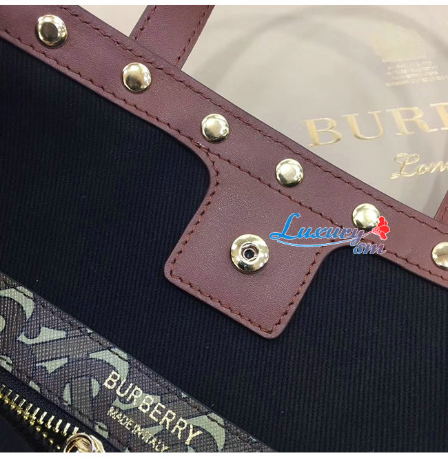 [스페셜오더]BURBERRY-80250681 버버리 블랙 스몰 모노그램 프린트 E-캔버스 포트레이트 토트백 가격 : 300,000원