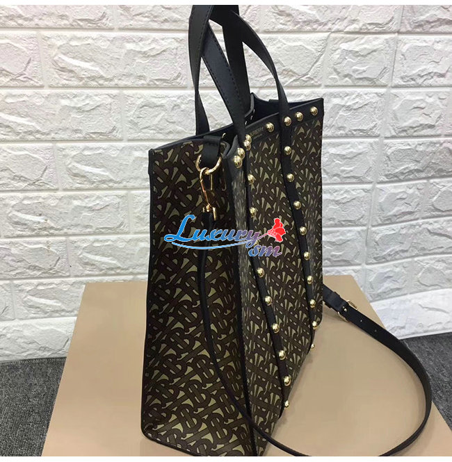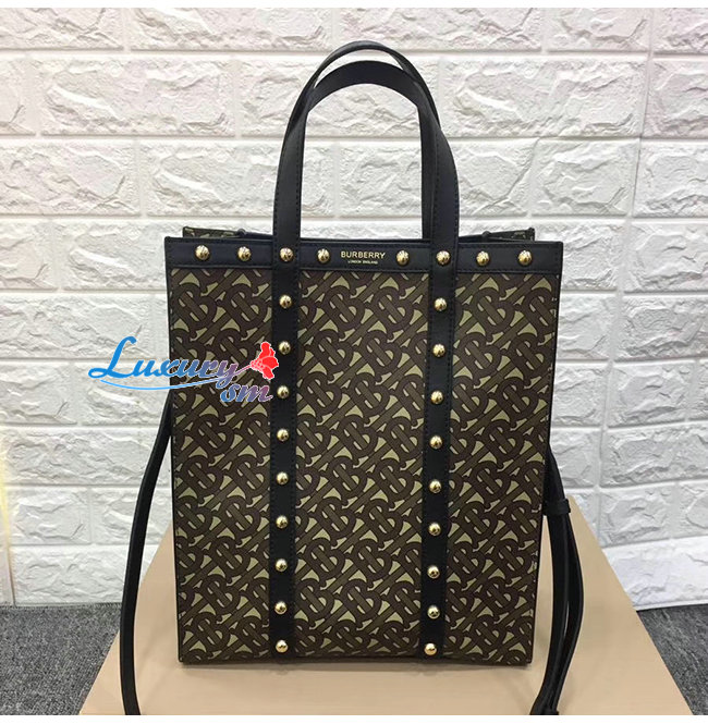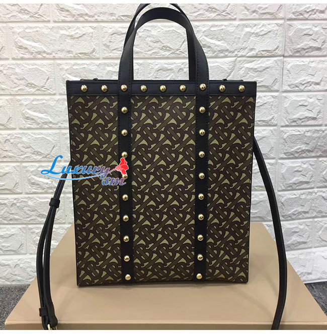 [스페셜오더]BURBERRY-80250761 버버리 탠 스몰 모노그램 프린트 E-캔버스 포트레이트 토트백