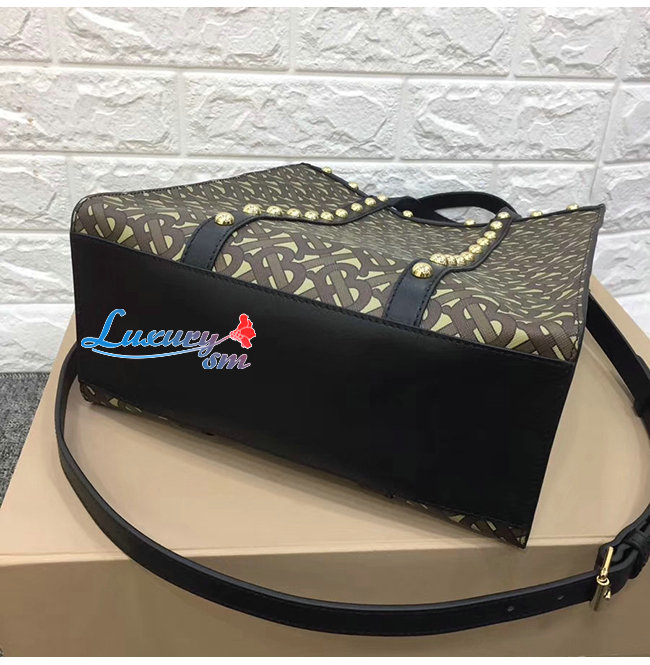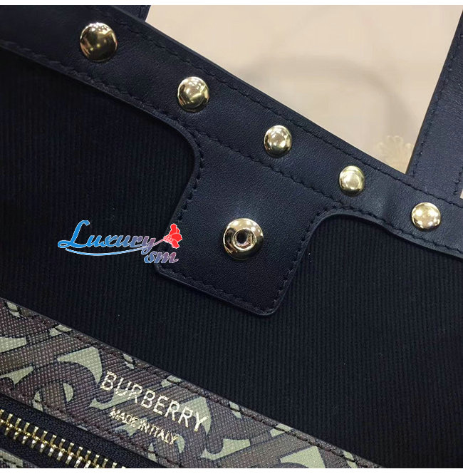 [스페셜오더]BURBERRY-80250681 버버리 블랙 스몰 모노그램 프린트 E-캔버스 포트레이트 토트백