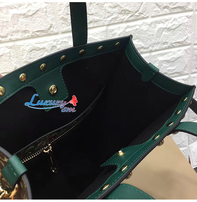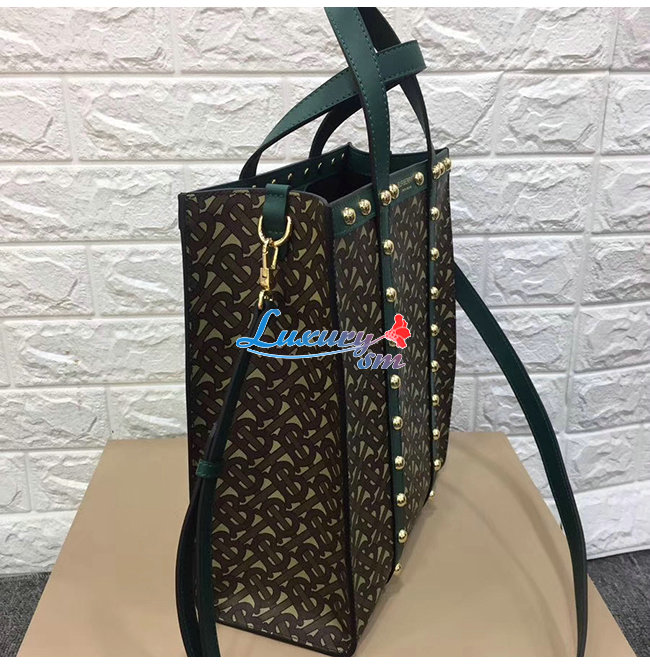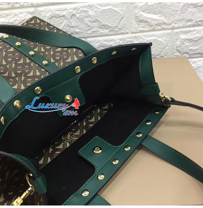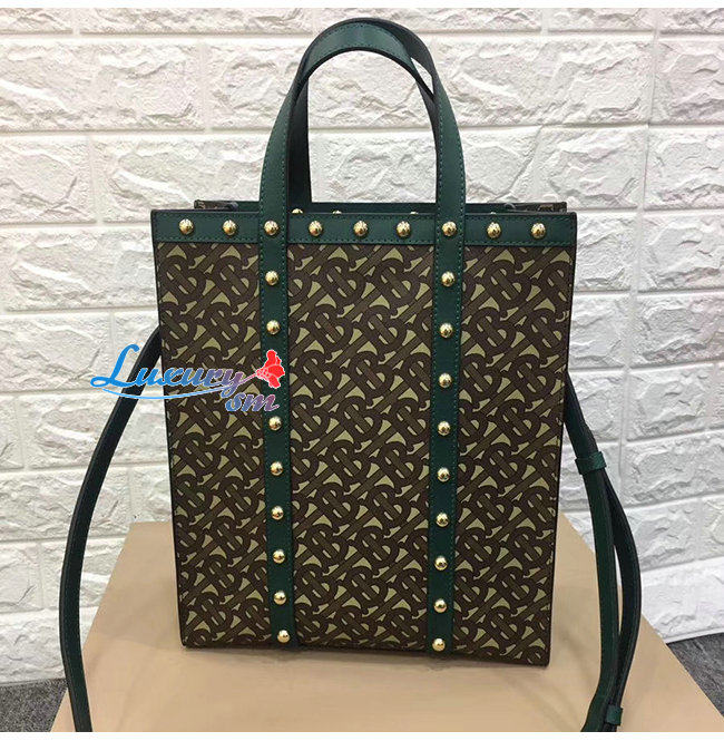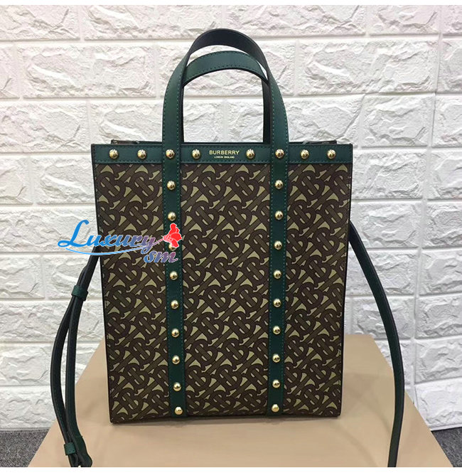 [스페셜오더]BURBERRY-80250751 버버리 그린 스몰 모노그램 프린트 E-캔버스 포트레이트 토트백