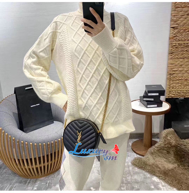 [스페셜오더]SAINT LAURENT-610436 생 로랑 화이트 쉐브론 퀼티드 송아지 가죽 라운드 카메라백