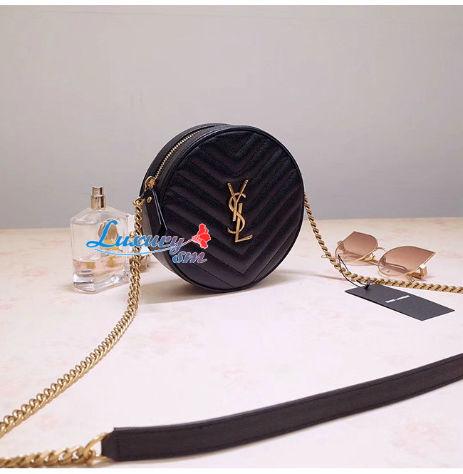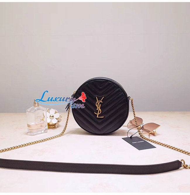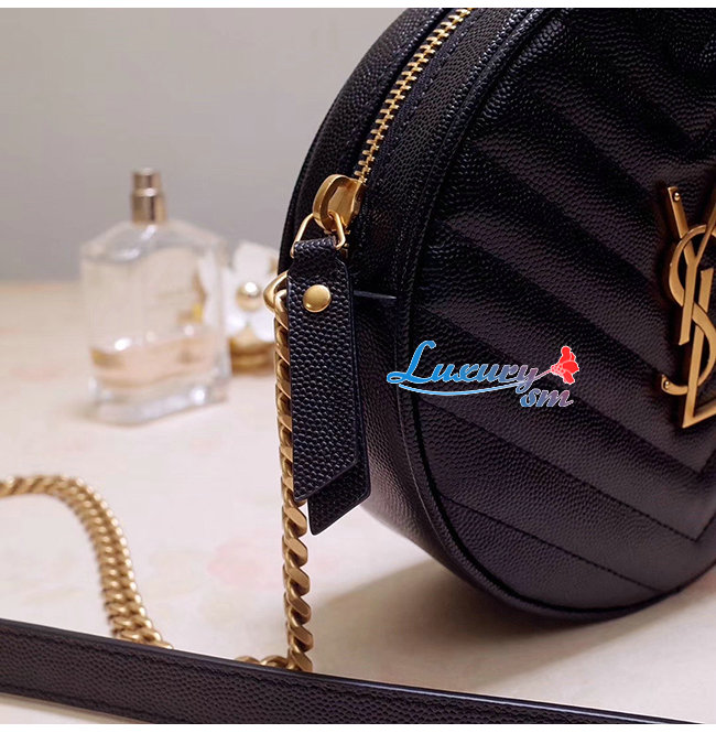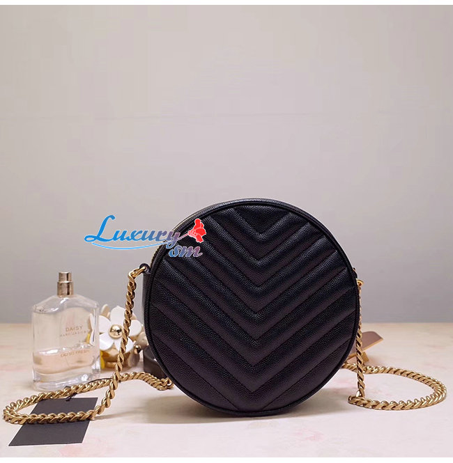 [스페셜오더]SAINT LAURENT-610436 생 로랑 블랙 쉐브론 퀼티드 송아지 가죽 라운드 카메라백