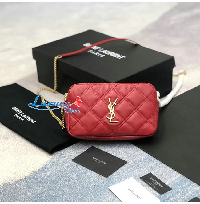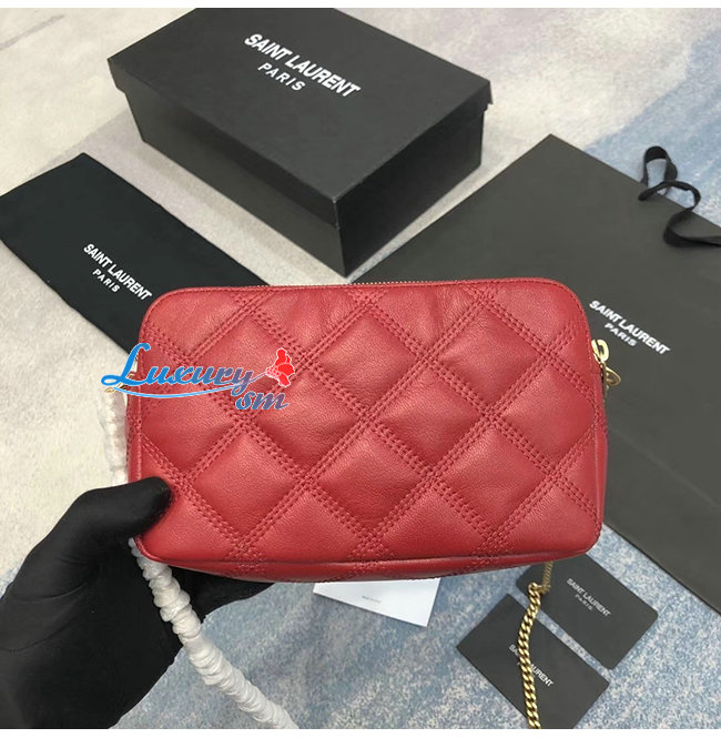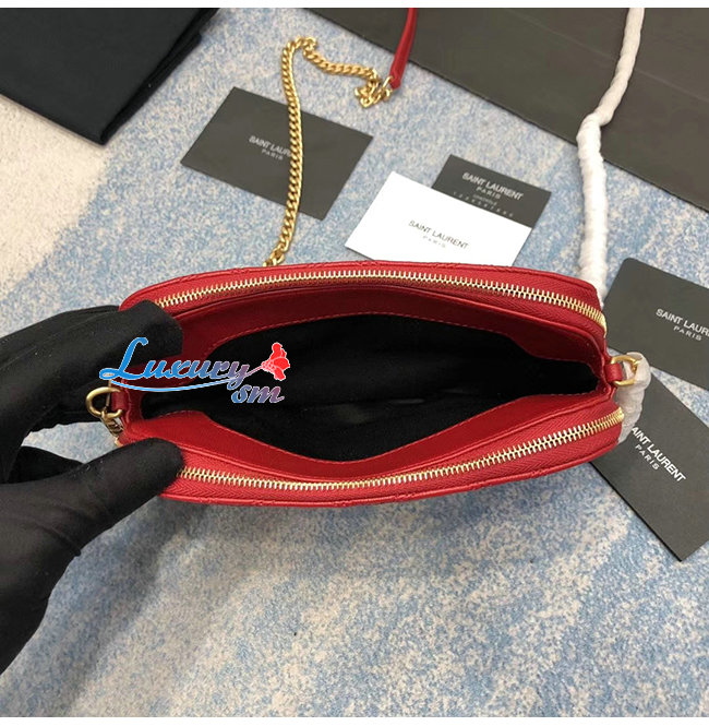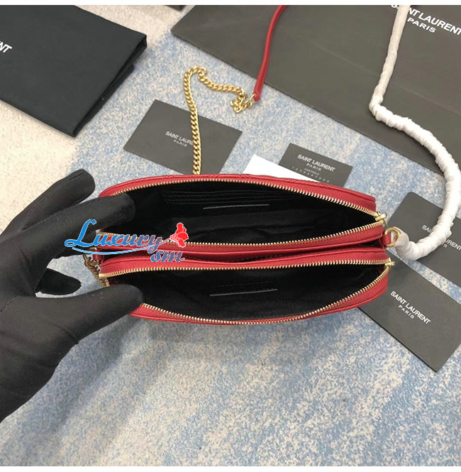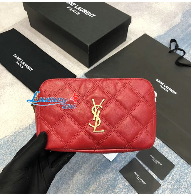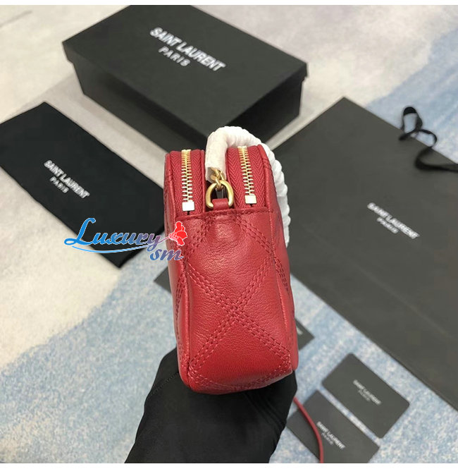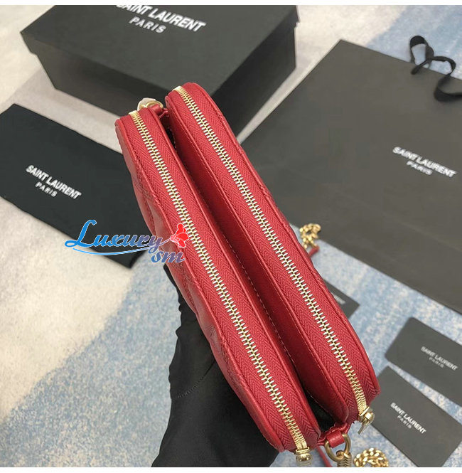 [스페셜오더]SAINT LAURENT-608941 생 로랑 레드 램스킨 베키 더블 집 파우치