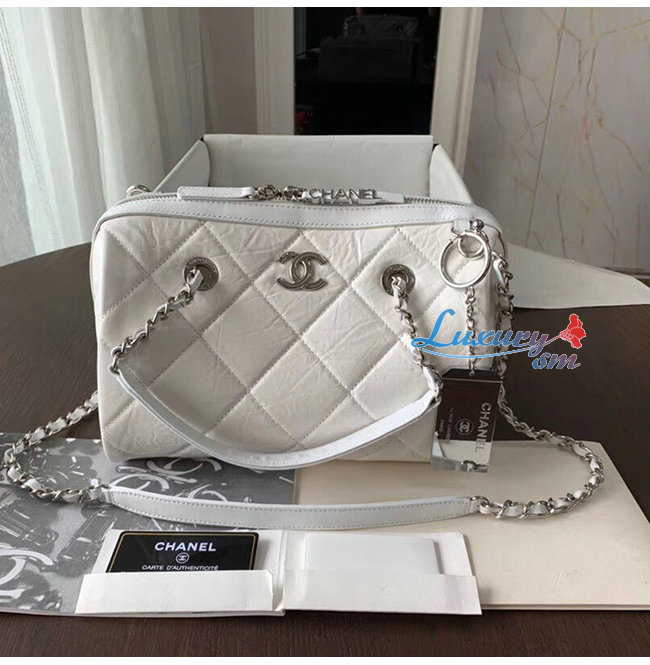 [스페셜오더]CHANEL-AS1321 샤넬 화이트 카프스킨 실버메탈 스몰 볼링백