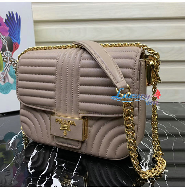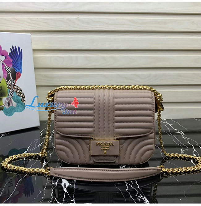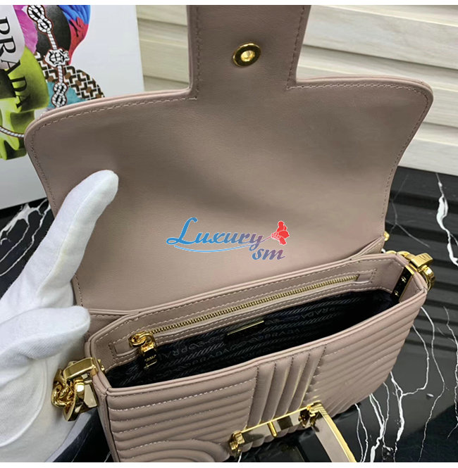 [스페셜오더]PRADA-1BD217 프라다 파우더 핑크 송아지 가죽 엠블럼 숄더백