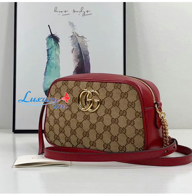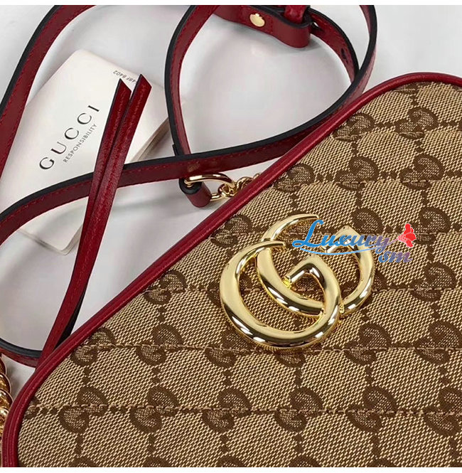 [스페셜오더]GUCCI-447632 8561 구찌 GG 마몽 베이지/레드 스몰 숄더백