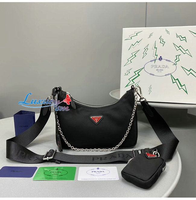 [스페셜오더]PRADA-1BH204 프라다 블랙 나일론 레드 디테일 리에디션 2005 숄더백