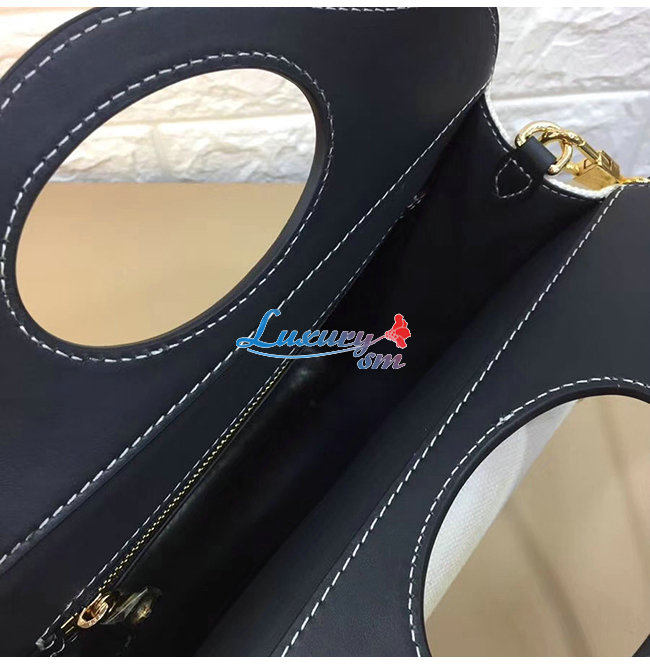 [스페셜오더]BURBERRY-80280581 버버리 블랙/화이트 미니 로고 그래픽 캔버스 레더 포켓 백