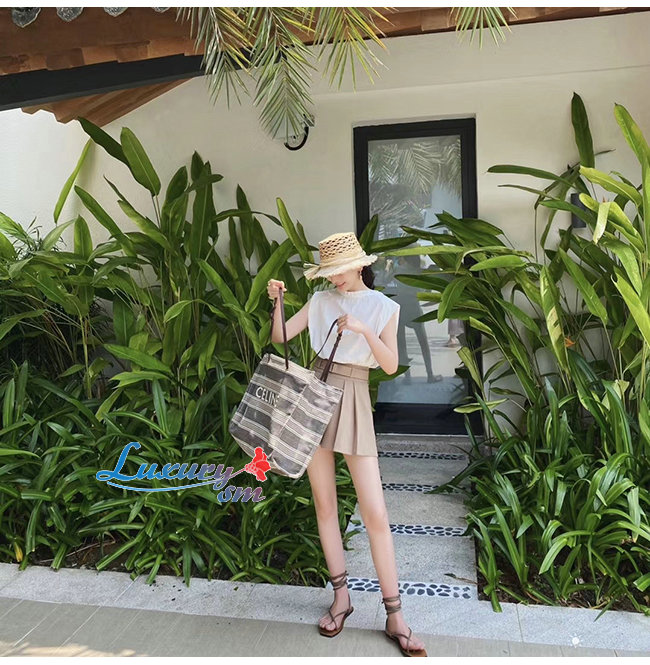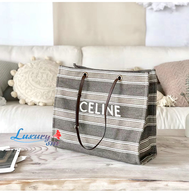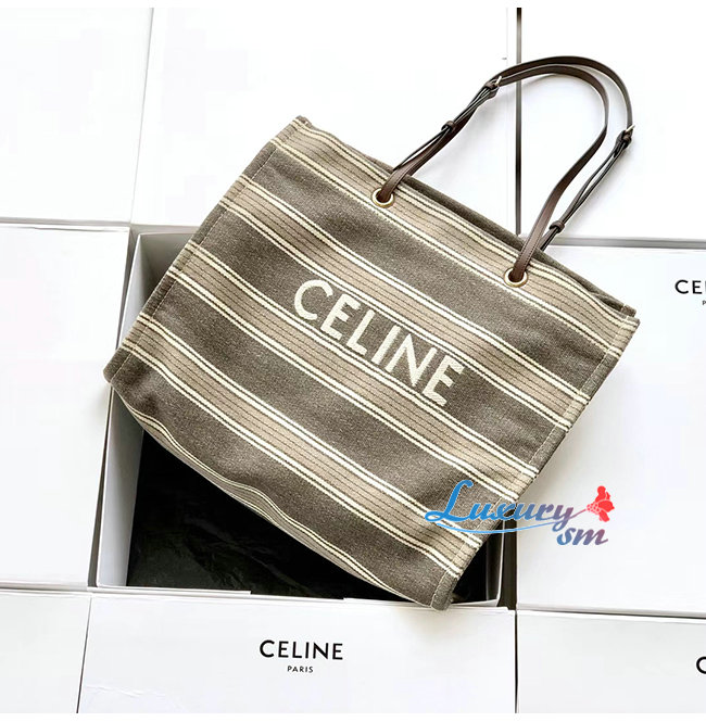 [스페셜오더]CELINE-192172 셀린느 그레이 텍스타일 스트라이프 카바스 토트백