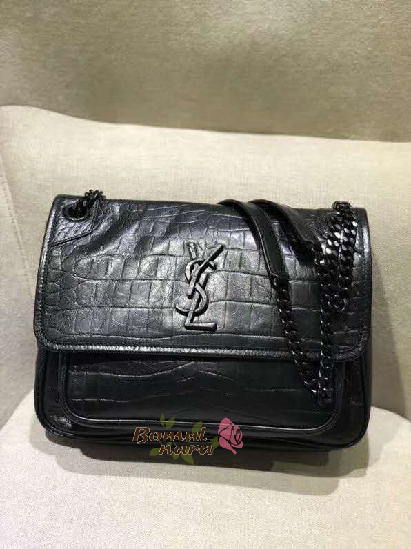 [스페셜오더]SAINT LAURENT-5489421 생 로랑 블랙 크로커다일 무늬 가죽 미디엄 니키 체인백
