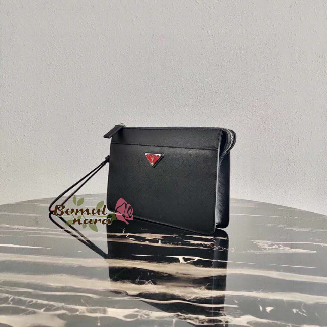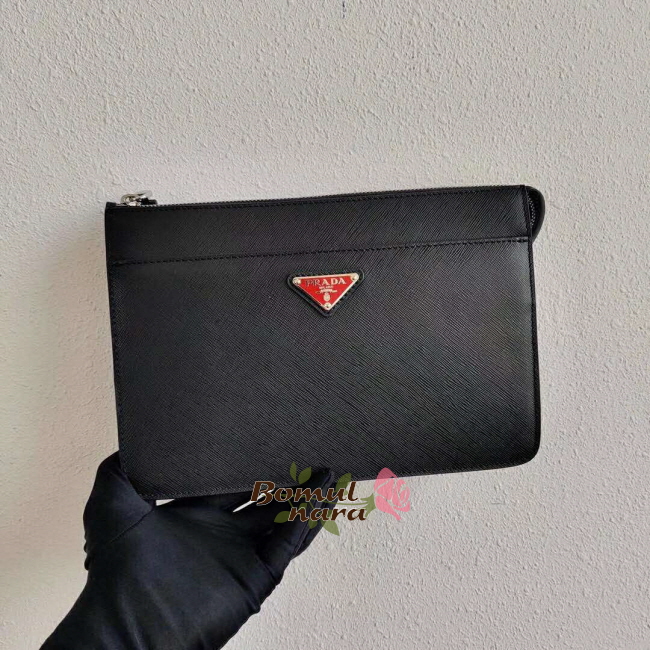 [스페셜오더]PRADA-2VF032 프라다 블랙 사피아노 블랙 트라이앵글 로고 클러치