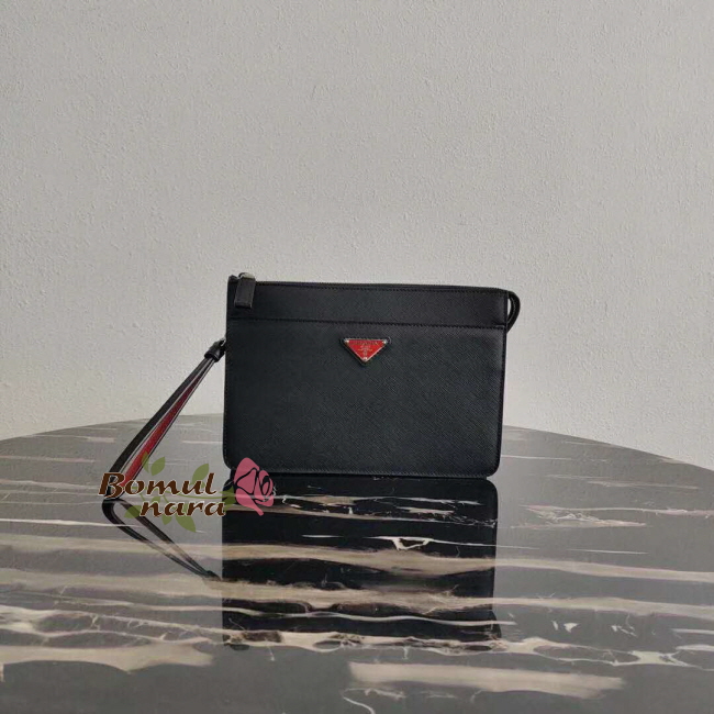 [스페셜오더]PRADA-2VF032 프라다 블랙 사피아노 레드 트라이앵글 로고 클러치
